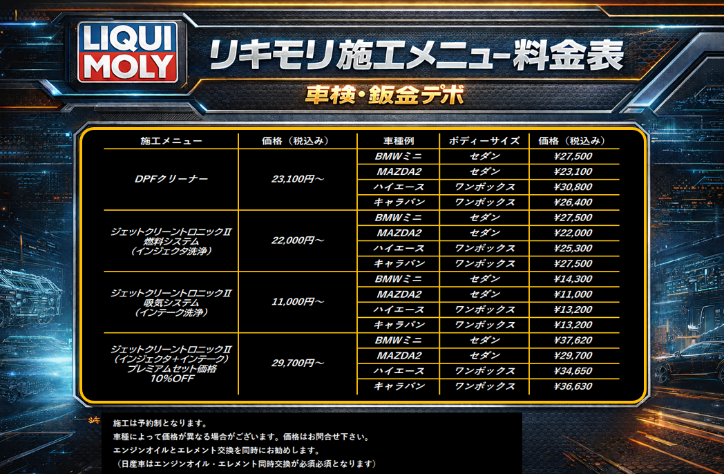 燃料システム(インジェクタ)洗浄・吸気システム(インテーク洗浄)